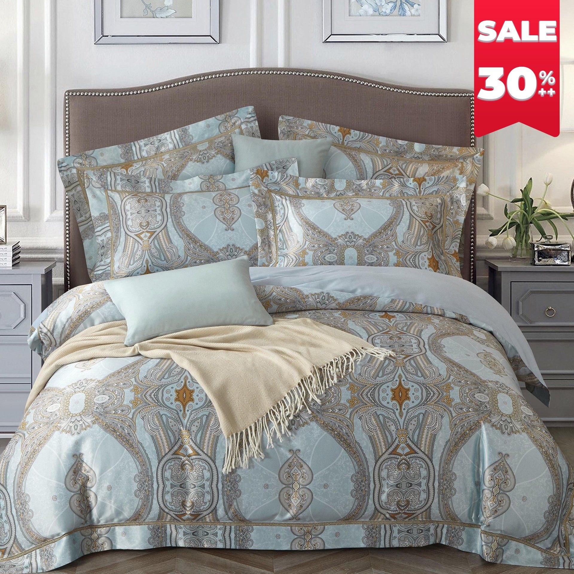 Set chăn ga chất liệu cotton lụa sang trọng và đem lại cảm giác vô cùng mềm mại, bóng mượt khi tiếp xúc với làn da của bạn.