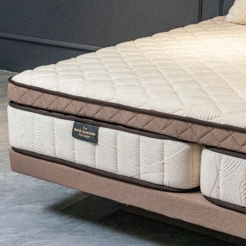 - Hệ thống Pocket springs - Lò xo túi độc lập: 1023 túi lò xo và được luyện cao tần từ thép nhập khẩu. Mỗi lò xo cao 15 cm được xếp thành hình tổ ong và bao quanh là thép khung định hình. Lò xo được bọc bằng vải Nonoven nên không gây cọ sát giữa các con lò xo với nhau, đảm bảo tuyệt đối sự êm ái, không gây tiếng động. Vải Nonoven tăng tuổi thọ con lò xo, chống rỉ sét và không gây dị ứng cho cơ thể con người.